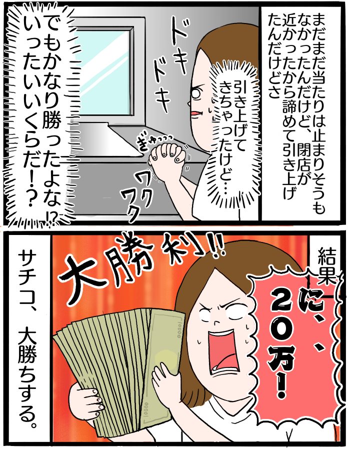 サチコパチンコ物語2020.12.20サチコパチンコ 今日も元気にリモートおしゃべり あとがきパチンコで勝ち、パチンコで使う。 真のパチンカス サチコ。 絵日記ランキング 11 コメントはこちら 同じカテゴリの記事 サチコ、コンタクトデビュウ UFOキャッチャーその後 前向きさを使い間違えたパターン 友から褒められるのは嬉しい 伝えたい思い!!!!! 脳の構造をたまに疑ってしまう! ギャンブルで本当に大切なこと まだまだポテトフライ ああ、サチコ サチコ、散る。 お肌が気になるお年頃になってしまった サチコはとても貴重でありがたい存在 サチコパチンコ物語 私の友達サチコ。 前の記事 宜野座の道の駅に行ってきたよ! 2020.12.16次の記事 一緒に来る奴間違えた。 2020.12.23アプリなら通知ですぐ読める! NAPBIZブログ This site is protected by reCAPTCHA and the Google Privacy Policy and Terms of Service apply.