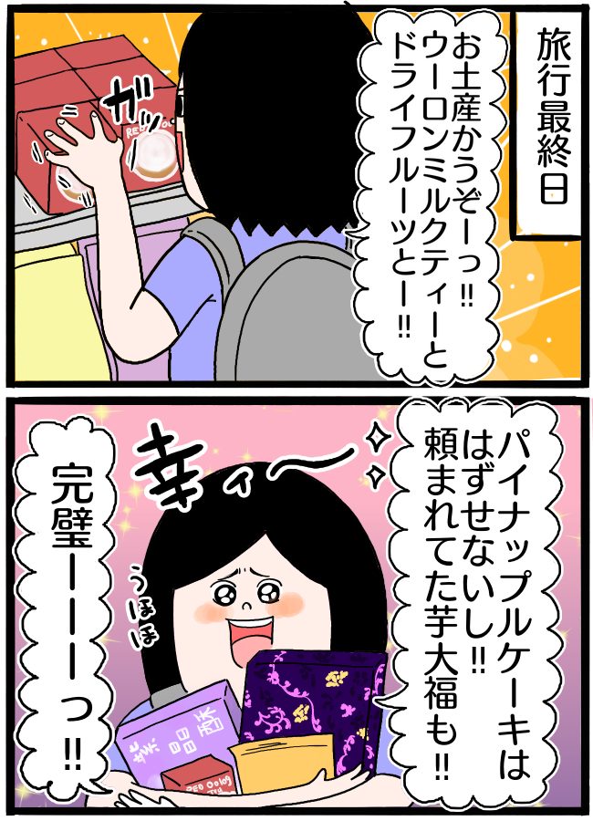 台湾旅行編 最終日2021.02.13台湾旅行編台北 お土産買うぜ〜 広告 ちゃんとした登場ゲートにいくと 既に他の人が飛行機に入って行ってた。 マジでギリギリだったよあっぶね。 あとがき態度クソ悪いヌガーの人も今や良き思い出… また行きてェ台湾。 絵日記ランキング 7 コメントはこちら 同じカテゴリの記事 前の台湾旅行の思い出まとめ 台湾旅行編 最終日 台湾旅行編4 自分自身の事はちっぽけに感じた 台湾編3 買一送一は一個買うともう一個貰えるって意味だよ!! 台湾旅行編2 グルメ!! 台湾旅行編 1 危険な入国審査 前の記事 台湾旅行編4 自分自身の事はちっぽけに感じた 2021.02.09次の記事 A&W 良いよね〜 2021.02.21アプリなら通知ですぐ読める! NAPBIZブログ This site is protected by reCAPTCHA and the Google Privacy Policy and Terms of Service apply.