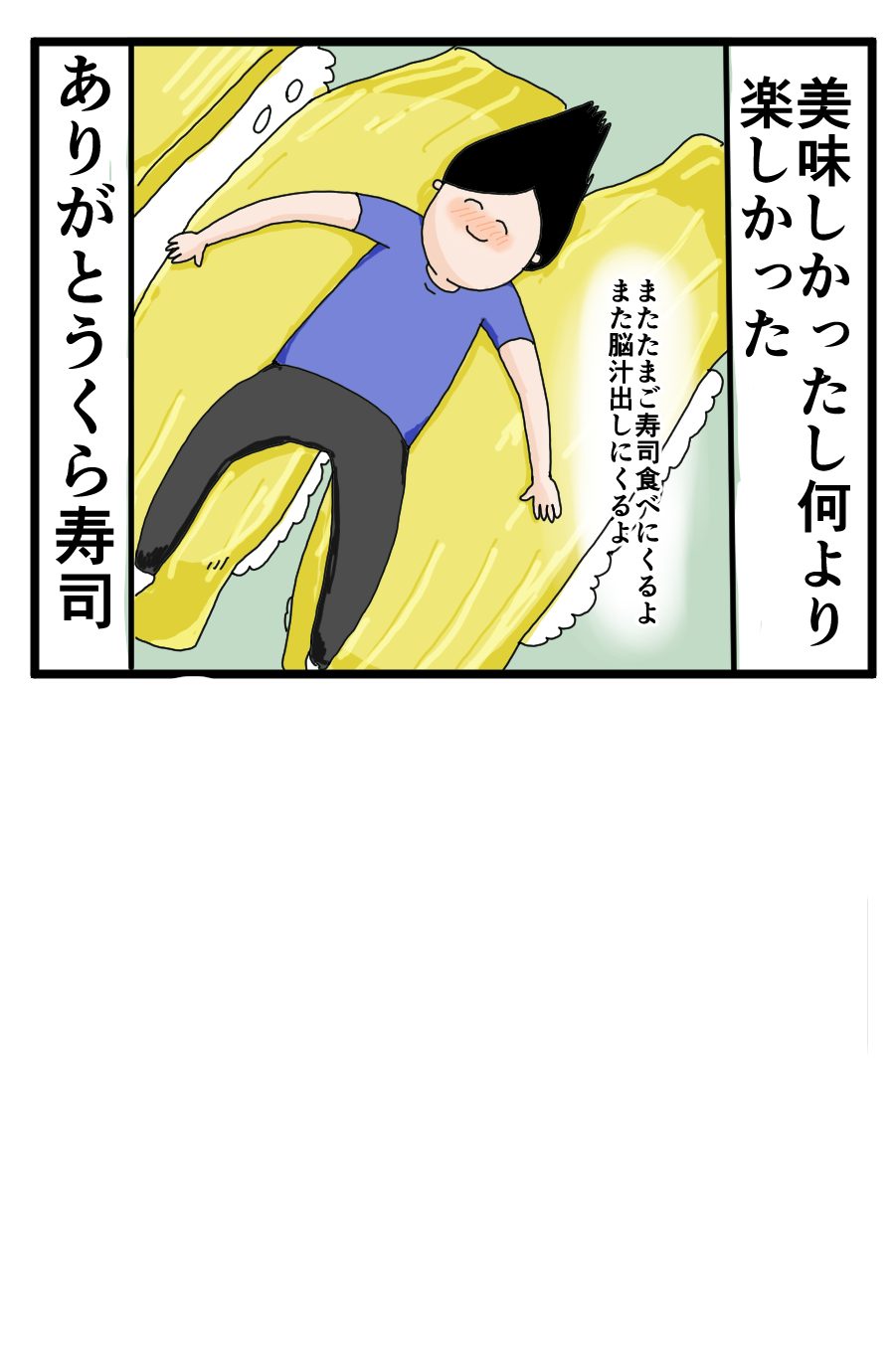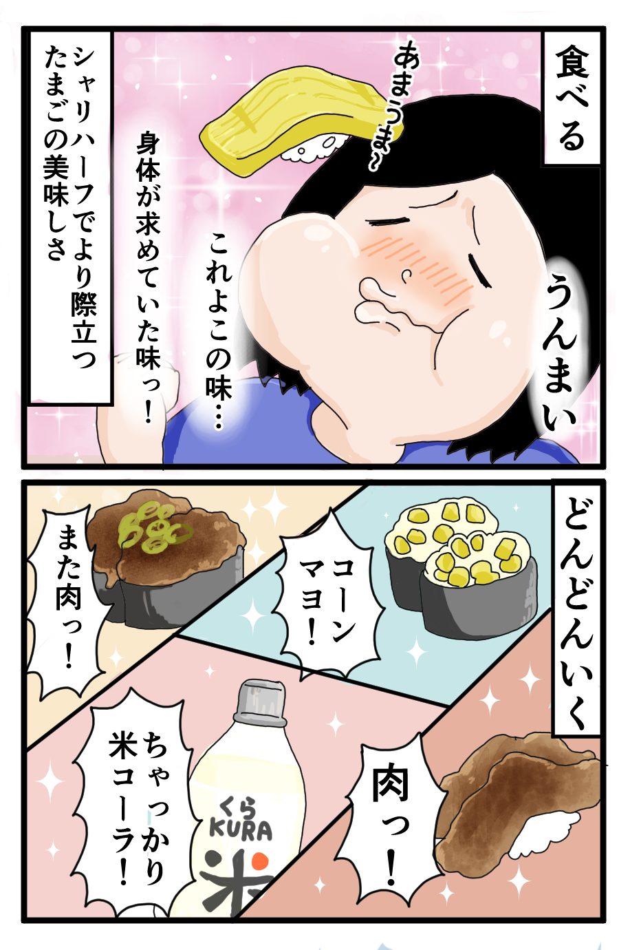 この日は朝ご飯ぬいて夜ご飯に少しコールスロー食べたくらい。お腹の中ほぼくら寿司!!