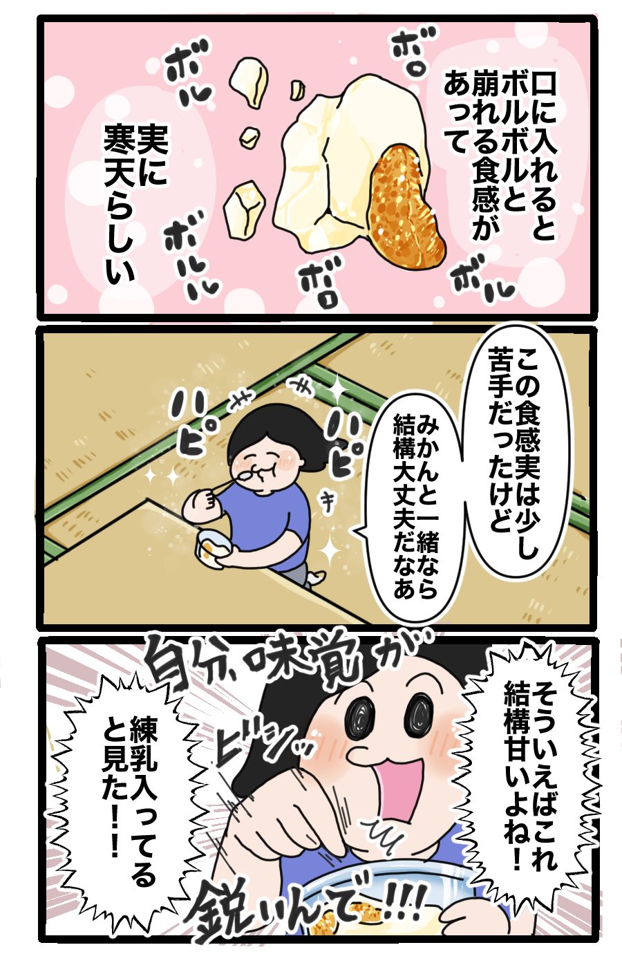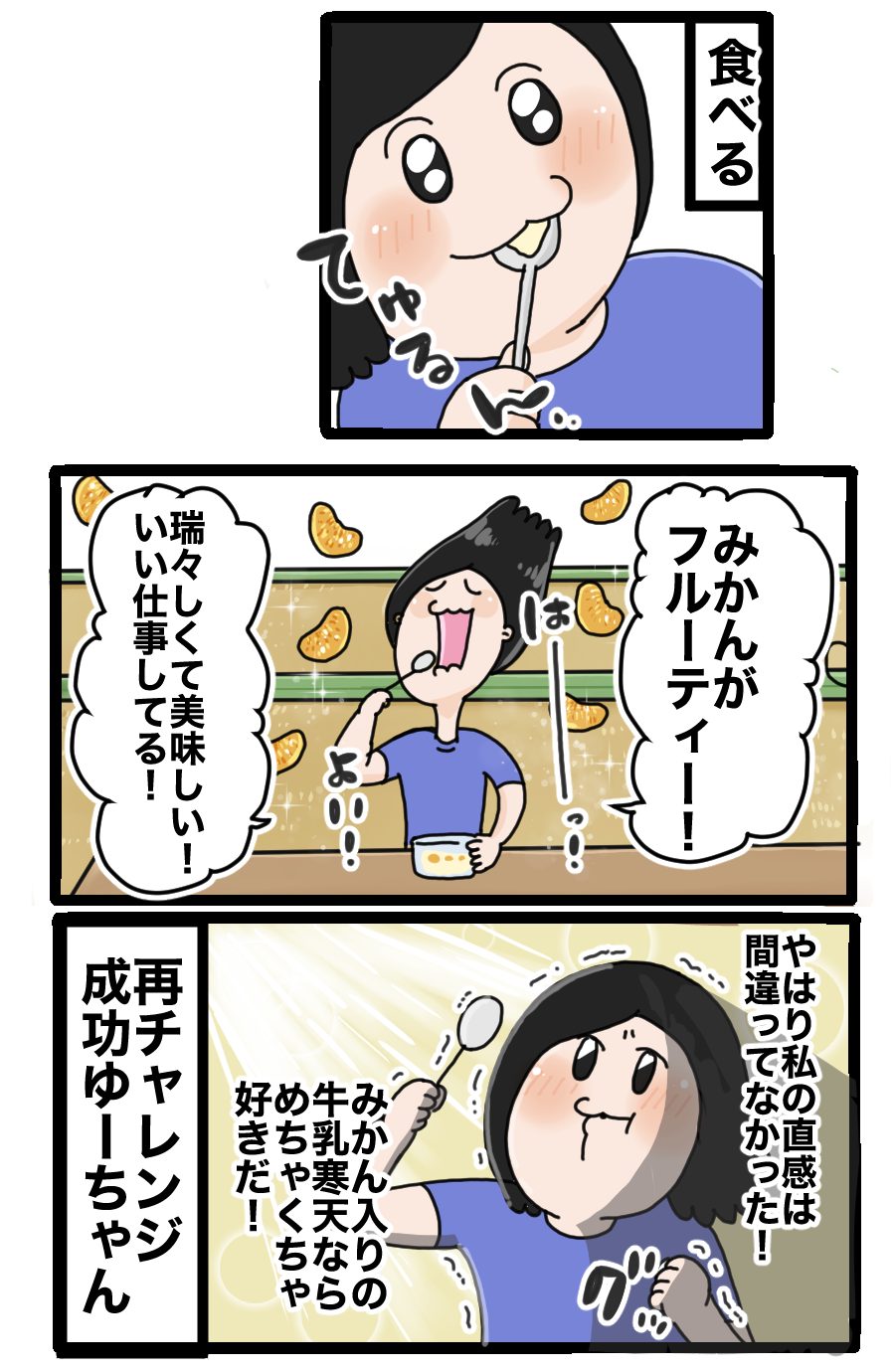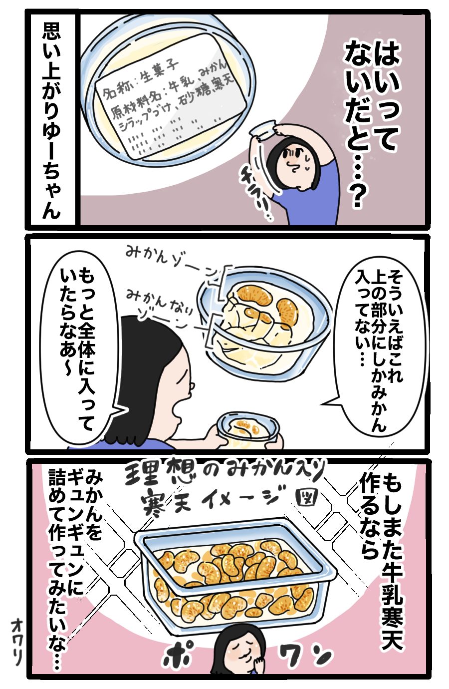 牛乳寒天食べよ〜みかんのとこ狙って食べよ〜
