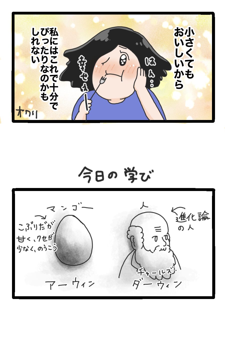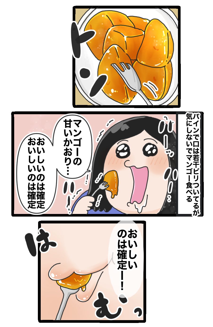 おいしいおいしいパインとマンゴー32025.07.25食べ物フルーツ マンゴーも食べるぞ! あとがき アーウィンっていう品種のマンゴーらしいマンゴーって小さくてもしっかりおいしいから無理して高くて大きいの買わなくても大丈夫だよ!小さくてもおいしいよ〜贈答品用食べるのは憧れるけどね!! 絵日記ランキングチョコって焼くと美味いんだよね〜↓焼きアルフォート食べた 16 コメントはこちら 同じカテゴリの記事 SNSで話題のやつ作った7 SNSで話題のやつ作った6 SNSで話題のやつ作った5 SNSで話題のやつ作った4 SNSで話題のやつ作った3 SNSで話題のやつ作った2 SNSで話題のやつ作った1 焼きあんまんキャラメリゼ4 焼きあんまんキャラメリゼ3 焼きあんまんキャラメリゼ2 焼きあんまんキャラメリゼ1 手作りピーナツバター作った5 手作りピーナツバター作った4 手作りピーナツバター作った3 手作りピーナツバター作った2 手作りピーナツバター作った1 黒糖きな粉ミルク作った4 黒糖きな粉ミルク作った3 黒糖きな粉ミルク作った2 黒糖きな粉ミルク作った1 生キャラメルチョコ作った6 生キャラメルチョコ作った5 生キャラメルチョコ作った4 生キャラメルチョコ作った3 生キャラメルチョコ作った2 生キャラメルチョコ作った1 しいたけの好きな食べ方4 しいたけの好きな食べ方3 しいたけの好きな食べ方2 しいたけの好きな食べ方1 オシャレサラダ食べた5 オシャレサラダ食べた4 オシャレサラダ食べた3 オシャレサラダ食べた2 オシャレサラダ作った1 肉まんを鍋で焼いてみた3 肉まんを鍋で焼いてみた2 肉まんを鍋で焼いてみた1 喫茶店みたいなココア作ってみた4 喫茶店みたいなココア作ってみた3 喫茶店みたいなココア作ってみた2 喫茶店みたいなココア作ってみた作ってみた1 茶碗蒸し作った6 茶碗蒸し作った5 茶碗蒸し作った4 茶碗蒸し作った3 茶碗蒸し作った2 茶碗蒸し作った1 おさつどきっ塩バターまみれ食べた2 おさつどきっ塩バターまみれ食べた1 バナナキャラメリゼ作った5 バナナキャラメリゼ4 バナナキャラメリゼ作った3 バナナキャラメリゼ作った2 バナナキャラメリゼ作った1 きなこスプレッド作った4 きなこスプレッド作った3 きなこスプレッド作った2 きなこスプレッド作った1 冷凍した三角チョコパイいちごミルク3 冷凍した三角チョコパイいちごミルク2 冷凍した三角チョコパイいちごミルク1 ナッペしたいので推し活ケーキ7 ナッペしたいので推し活ケーキ6 ナッペしたいので推し活ケーキ5 ナッペしたいので推し活ケーキ4 ナッペしたいので推し活ケーキ3 ナッペしたいので推し活ケーキ2 ナッペしたいので推し活ケーキ1 ツナメルト作った3 ツナメルト作った2 ツナメルト作った1 ヘルメスソース使った6 ヘルメスソースを使う5 ヘルメスソースを使う4 ヘルメスソースを使う3 ヘルメスソース使った2 ヘルメスソースを使う1 秋はやっぱりスイートポテトパイ4 秋はやっぱりスイートポテトパイ3 秋はやっぱりスイートポテトパイ2 秋はやっぱりスイートポテトパイ1 プリン作った5 プリン作った4 プリン作った3 プリン作った2 プリン作った1 お魚練習〜くら寿司編3〜 お魚練習〜くら寿司2〜 お魚練習〜くら寿司編1〜 メロンクリームソーダ作った3 メロンクリームソーダ作った2 メロンクリームソーダ作った1 フレンチドック食べてみた 成城石井のカレー食べたら2 成城石井のカレー食べたら1 ゆーちゃん、ブラックサンダー焼くってよ2 ゆーちゃん、ブラックサンダー焼くってよ1 ポークたまごおにぎり作った2 ポークたまごおにぎり作った1 おいしいおいしいパインとマンゴー3 おいしいおいしいパインとマンゴー2 おいしいおいしいパインとマンゴー あの時とは違う牛乳寒天2 あの時とは違う牛乳寒天1 うまトマ難民カレギュウに挑む2 うまトマ難民カレギュウに挑む1 ビヨット錬成してみた2 ビヨット錬成してみた1 もものパンナコッタ作ったのに2 もものパンナコッタ作ったのに 丸亀製麺のうどん食べた3 丸亀製麺のうどん食べた2 丸亀製麺のうどん食べた1 アスパラガスオシャレに食べた3 アスパラガスオシャレに食べた2 アスパラガスオシャレに食べた1 フルーチェ久しぶりに食べた3 フルーチェ久しぶりに食べた2 フルーチェ久しぶりに食べた1 マンゴスチンデビュー2 マンゴスチンデビュー1 リンツのドバイチョコ食べた2 リンツのドバイチョコ食べた1 ももゼリー作った3 ももゼリー作った2 ももゼリー作った1 無印のレモンクリームパスタ食べた2 無印のレモンクリームパスタ食べた1 もっちゅりん食べた ブルーベリージャムをオシャレに食べる2 ブルーベリージャムをオシャレに食べる1 シャウエッセンで朝食3 シャウエッセンで朝食2 シャウエッセンで朝食1 松屋デビューした2 朝コメダした2 朝コメダした1 カルディの杏仁豆腐でドリンク作った2 バジルマヨの海老カツバーガー食べた 舟和の芋ようかん食べた2 舟和の芋ようかん食べた1 ピスタチオサンドサンド食べた サーティーワンのポップ10やった2 サーティーワンのポップ10やった1 チーズ