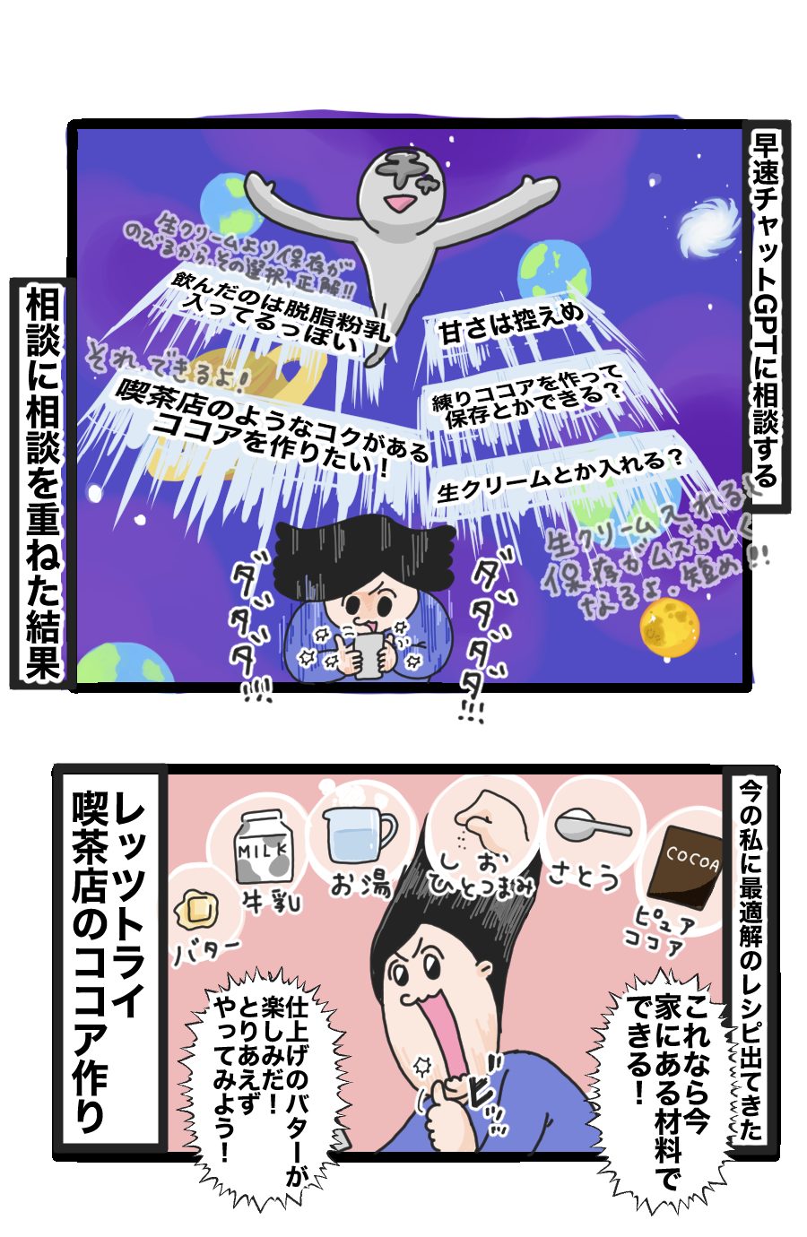 喫茶店みたいなココア作ってみた作ってみた12025.12.22食べ物ココア作り 広告 あとがき生クリーム入れたいとか言ったらさ保存にあまり向かないって言われたり保存の量の調整だったりお料理ってたくさん考えることあるよね〜 絵日記ランキング朝コメダまたしたいな〜↓朝コメダした2 15 コメントはこちら 同じカテゴリの記事 SNSで話題のやつ作った7 SNSで話題のやつ作った6 SNSで話題のやつ作った5 SNSで話題のやつ作った4 SNSで話題のやつ作った3 SNSで話題のやつ作った2 SNSで話題のやつ作った1 焼きあんまんキャラメリゼ4 焼きあんまんキャラメリゼ3 焼きあんまんキャラメリゼ2 焼きあんまんキャラメリゼ1 手作りピーナツバター作った5 手作りピーナツバター作った4 手作りピーナツバター作った3 手作りピーナツバター作った2 手作りピーナツバター作った1 黒糖きな粉ミルク作った4 黒糖きな粉ミルク作った3 黒糖きな粉ミルク作った2 黒糖きな粉ミルク作った1 生キャラメルチョコ作った6 生キャラメルチョコ作った5 生キャラメルチョコ作った4 生キャラメルチョコ作った3 生キャラメルチョコ作った2 生キャラメルチョコ作った1 しいたけの好きな食べ方4 しいたけの好きな食べ方3 しいたけの好きな食べ方2 しいたけの好きな食べ方1 オシャレサラダ食べた5 オシャレサラダ食べた4 オシャレサラダ食べた3 オシャレサラダ食べた2 オシャレサラダ作った1 肉まんを鍋で焼いてみた3 肉まんを鍋で焼いてみた2 肉まんを鍋で焼いてみた1 喫茶店みたいなココア作ってみた4 喫茶店みたいなココア作ってみた3 喫茶店みたいなココア作ってみた2 喫茶店みたいなココア作ってみた作ってみた1 茶碗蒸し作った6 茶碗蒸し作った5 茶碗蒸し作った4 茶碗蒸し作った3 茶碗蒸し作った2 茶碗蒸し作った1 おさつどきっ塩バターまみれ食べた2 おさつどきっ塩バターまみれ食べた1 バナナキャラメリゼ作った5 バナナキャラメリゼ4 バナナキャラメリゼ作った3 バナナキャラメリゼ作った2 バナナキャラメリゼ作った1 きなこスプレッド作った4 きなこスプレッド作った3 きなこスプレッド作った2 きなこスプレッド作った1 冷凍した三角チョコパイいちごミルク3 冷凍した三角チョコパイいちごミルク2 冷凍した三角チョコパイいちごミルク1 ナッペしたいので推し活ケーキ7 ナッペしたいので推し活ケーキ6 ナッペしたいので推し活ケーキ5 ナッペしたいので推し活ケーキ4 ナッペしたいので推し活ケーキ3 ナッペしたいので推し活ケーキ2 ナッペしたいので推し活ケーキ1 ツナメルト作った3 ツナメルト作った2 ツナメルト作った1 ヘルメスソース使った6 ヘルメスソースを使う5 ヘルメスソースを使う4 ヘルメスソースを使う3 ヘルメスソース使った2 ヘルメスソースを使う1 秋はやっぱりスイートポテトパイ4 秋はやっぱりスイートポテトパイ3 秋はやっぱりスイートポテトパイ2 秋はやっぱりスイートポテトパイ1 プリン作った5 プリン作った4 プリン作った3 プリン作った2 プリン作った1 お魚練習〜くら寿司編3〜 お魚練習〜くら寿司2〜 お魚練習〜くら寿司編1〜 メロンクリームソーダ作った3 メロンクリームソーダ作った2 メロンクリームソーダ作った1 フレンチドック食べてみた 成城石井のカレー食べたら2 成城石井のカレー食べたら1 ゆーちゃん、ブラックサンダー焼くってよ2 ゆーちゃん、ブラックサンダー焼くってよ1 ポークたまごおにぎり作った2 ポークたまごおにぎり作った1 おいしいおいしいパインとマンゴー3 おいしいおいしいパインとマンゴー2 おいしいおいしいパインとマンゴー あの時とは違う牛乳寒天2 あの時とは違う牛乳寒天1 うまトマ難民カレギュウに挑む2 うまトマ難民カレギュウに挑む1 ビヨット錬成してみた2 ビヨット錬成してみた1 もものパンナコッタ作ったのに2 もものパンナコッタ作ったのに 丸亀製麺のうどん食べた3 丸亀製麺のうどん食べた2 丸亀製麺のうどん食べた1 アスパラガスオシャレに食べた3 アスパラガスオシャレに食べた2 アスパラガスオシャレに食べた1 フルーチェ久しぶりに食べた3 フルーチェ久しぶりに食べた2 フルーチェ久しぶりに食べた1 マンゴスチンデビュー2 マンゴスチンデビュー1 リンツのドバイチョコ食べた2 リンツのドバイチョコ食べた1 ももゼリー作った3 ももゼリー作った2 ももゼリー作った1 無印のレモンクリームパスタ食べた2 無印のレモンクリームパスタ食べた1 もっちゅりん食べた ブルーベリージャムをオシャレに食べる2 ブルーベリージャムをオシャレに食べる1 シャウエッセンで朝食3 シャウエッセンで朝食2 シャウエッセンで朝食1 松屋デビューした2 朝コメダした2 朝コメダした1 カルディの杏仁豆腐でドリンク作った2 バジルマヨの海老カツバーガー食べた 舟和の芋ようかん食べた2 舟和の芋ようかん食べた1 ピスタチオサンドサンド食べた サーティーワンのポップ10やった2 サーティーワンのポップ10やった1 チーズソース作った3 チーズソース作った1 怠惰でいいと決めてプリングルス ハーゲンダッツ